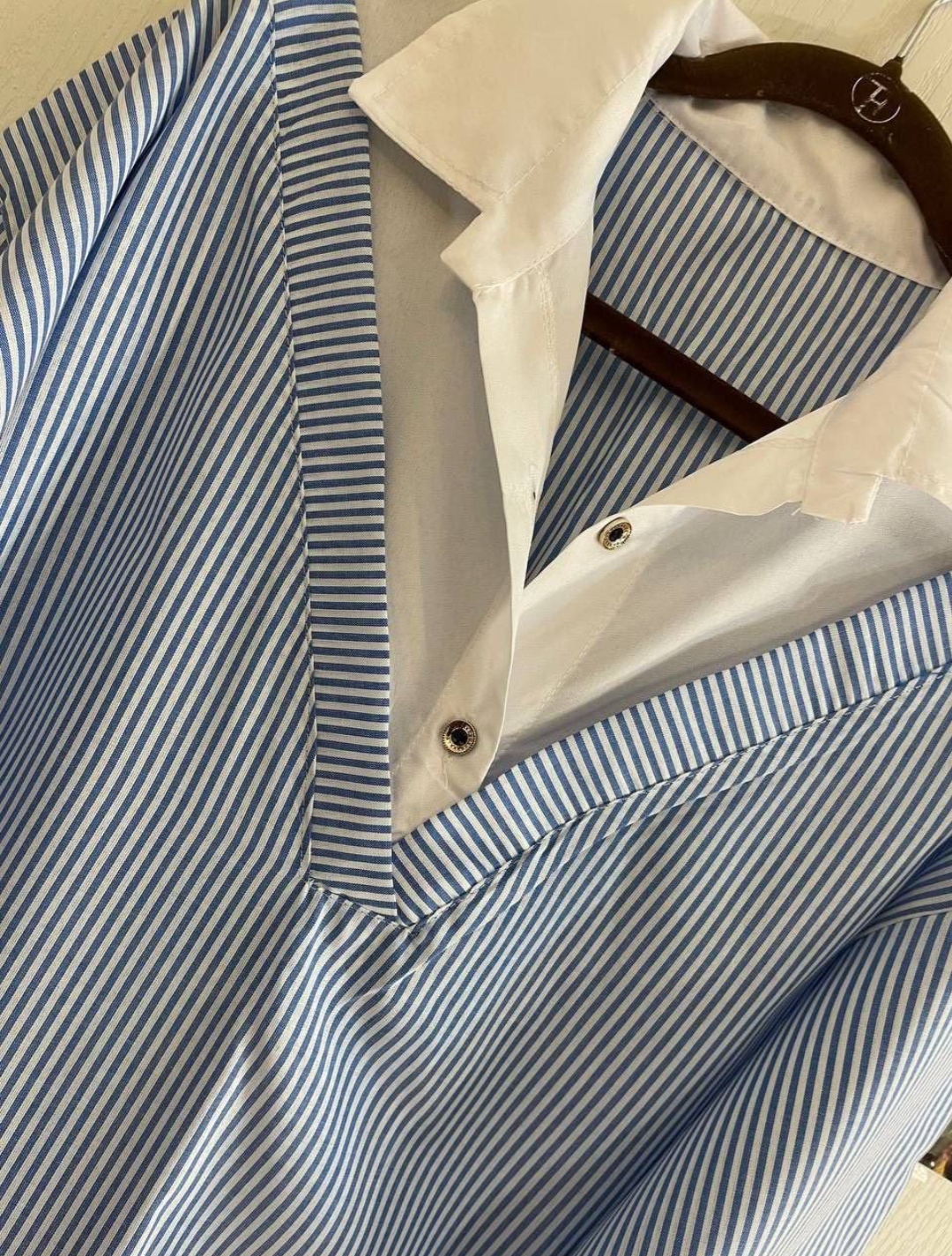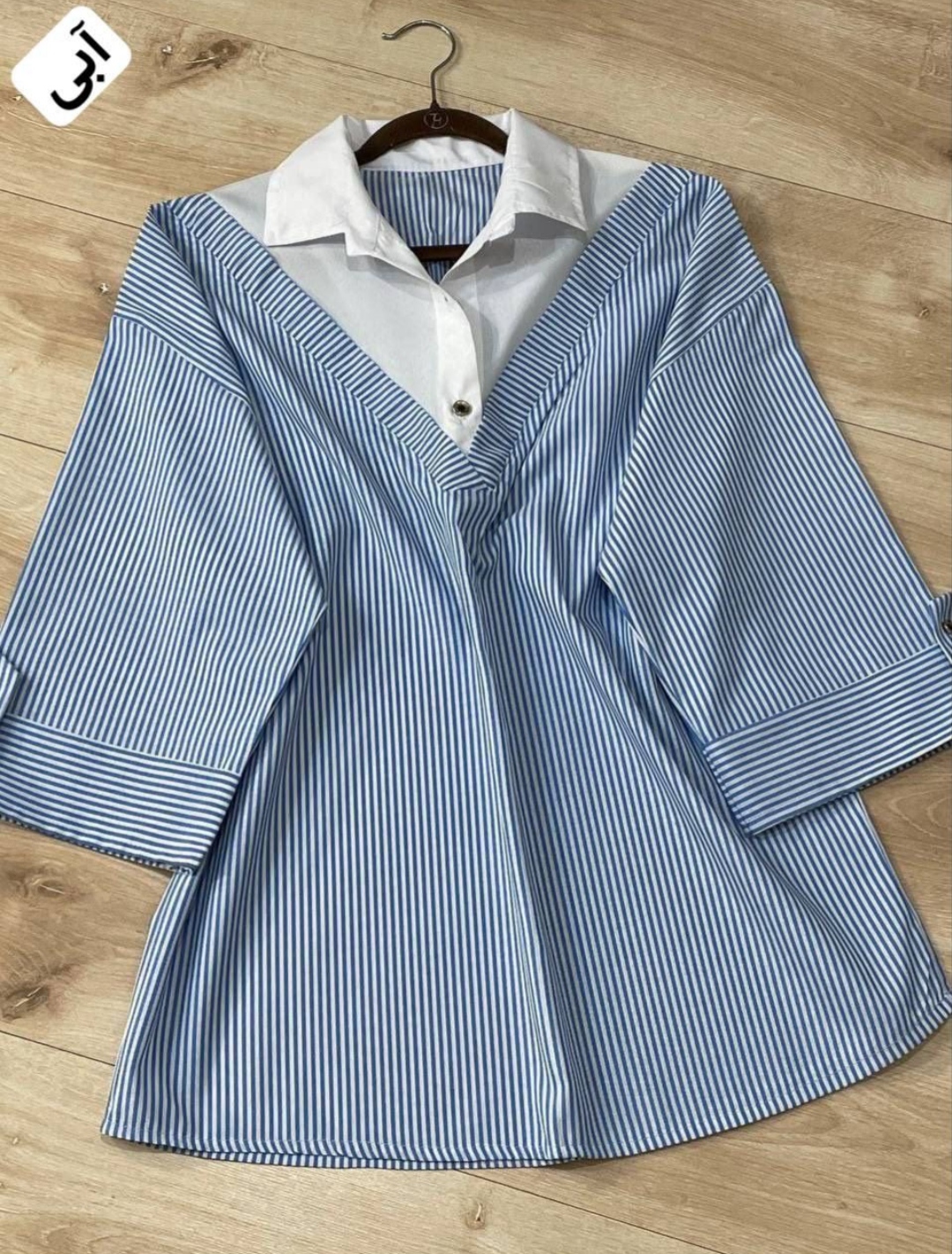 شومیز راه راه ترند پارچه تترون درجه یک فری سایز مناسب سایز ۳۶ تا۴۶ قد کار حدود ۷۵ دور سینه ۱۱۰ قد استین ۴۹