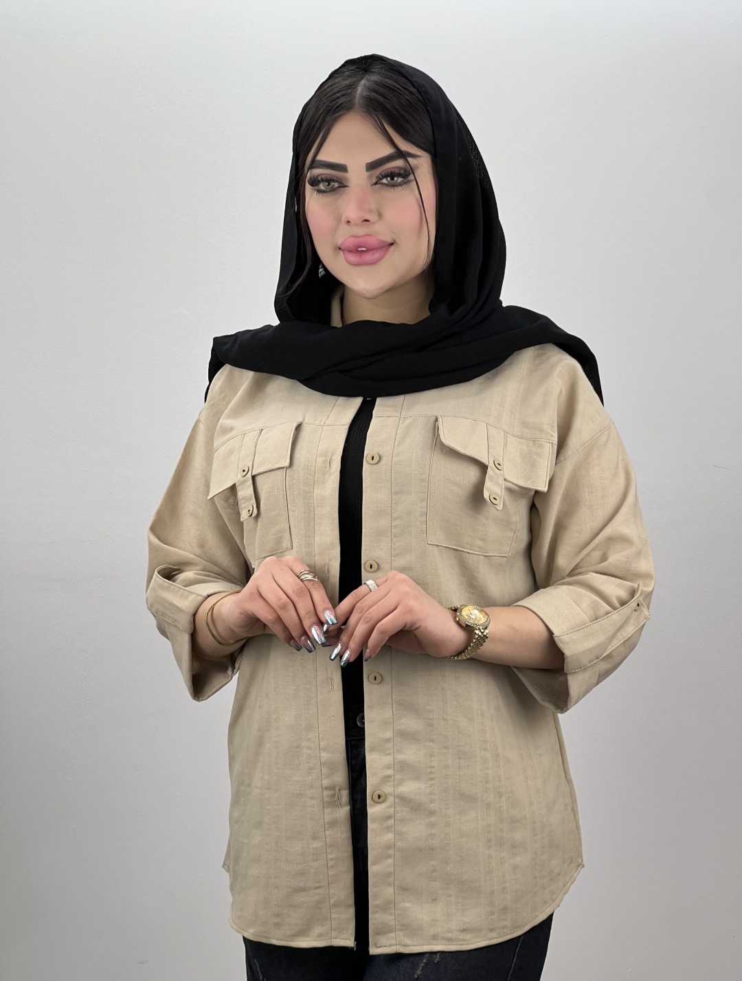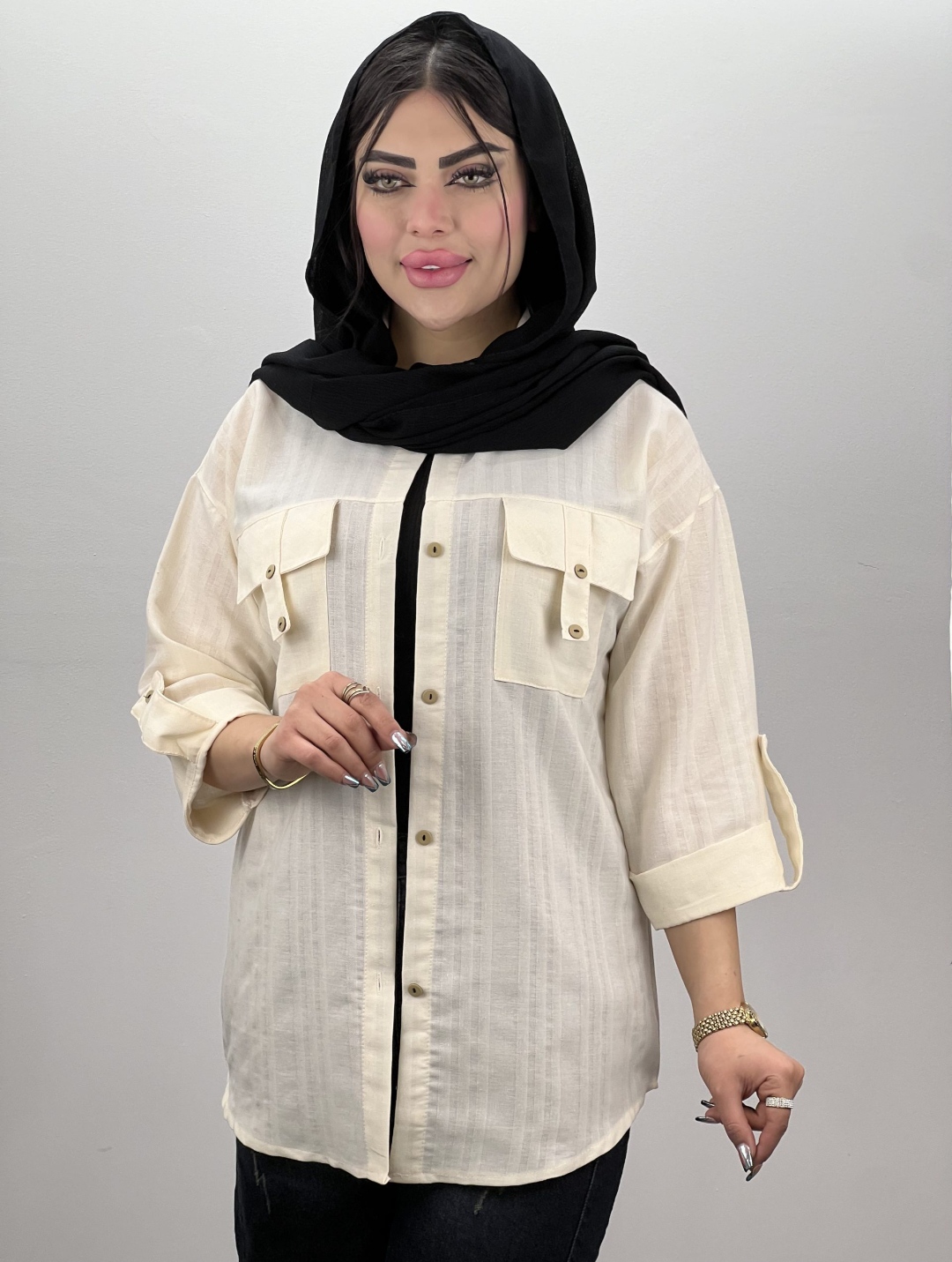 شومیز مانتو لینن جیب صلیبی قد کار 77 قد آستین45 دور سینه 110 فری سایز مناسب سایز 36 تا46 👈امکان اختلاف اندازه بین دو الی سه سانت در همه محصولات می باشد